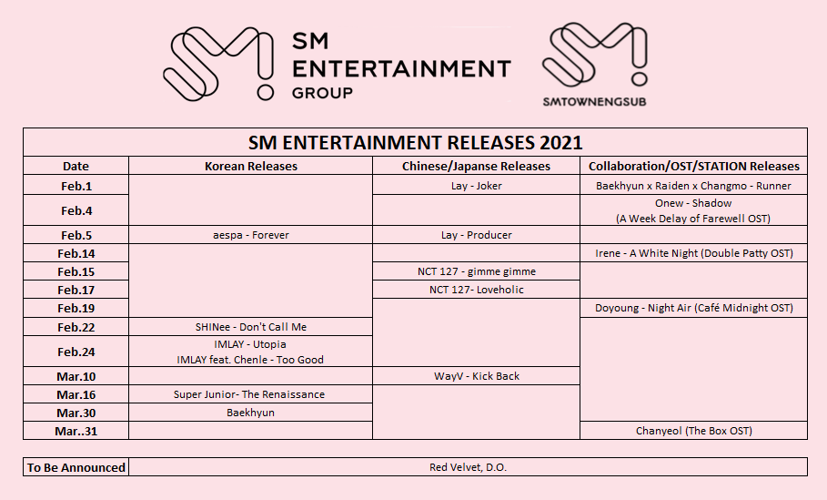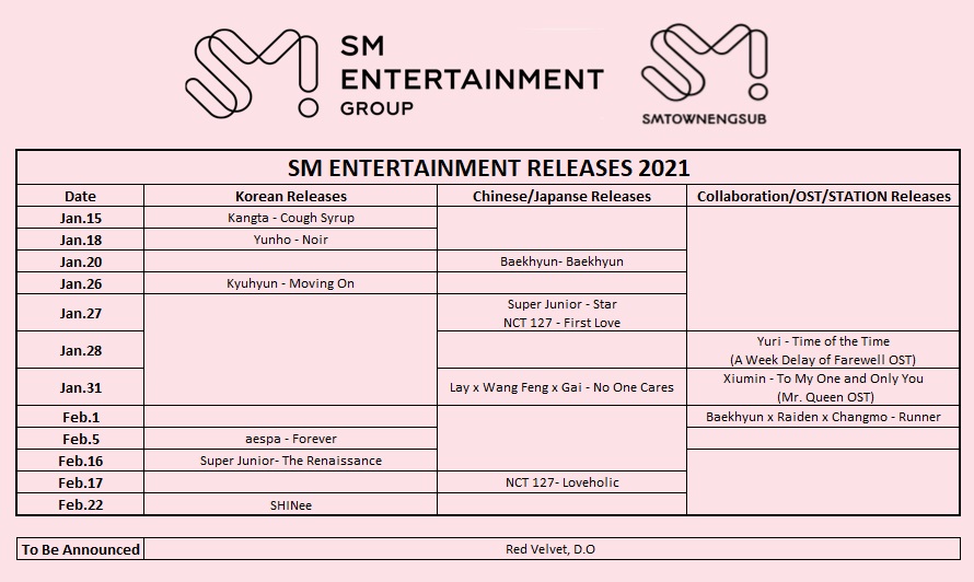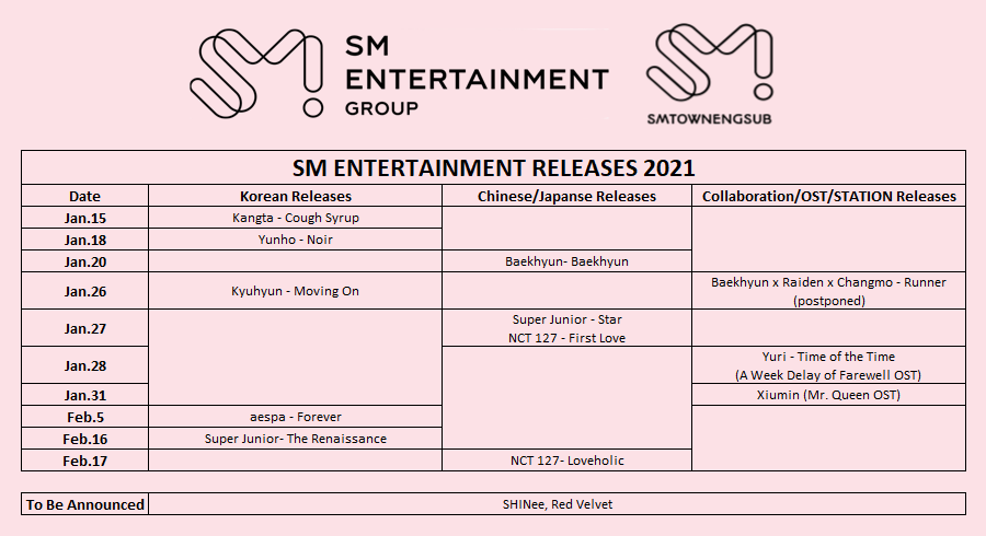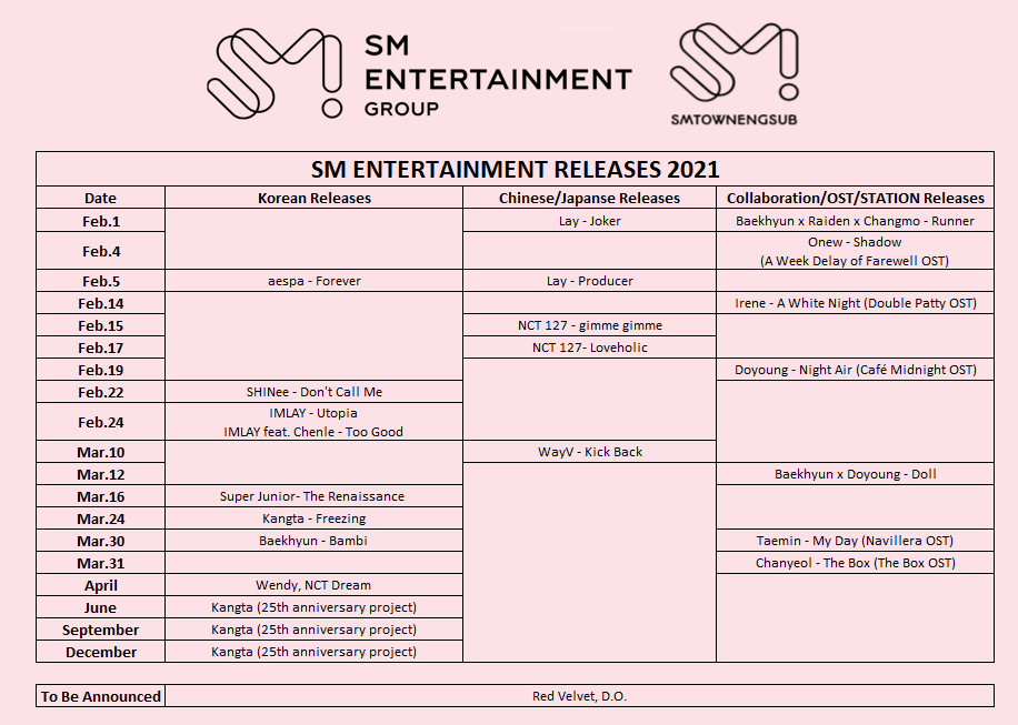 Smtownengsub On Twitter Sm Entertainment Releases 2021 Mar 24 Kangta Freezing Mar 30 Baekhyun Bambi Mar 30 Taemin My Day Mar 31 Chanyeol The Box April Wendy Nctdream Comeback June Kangta September